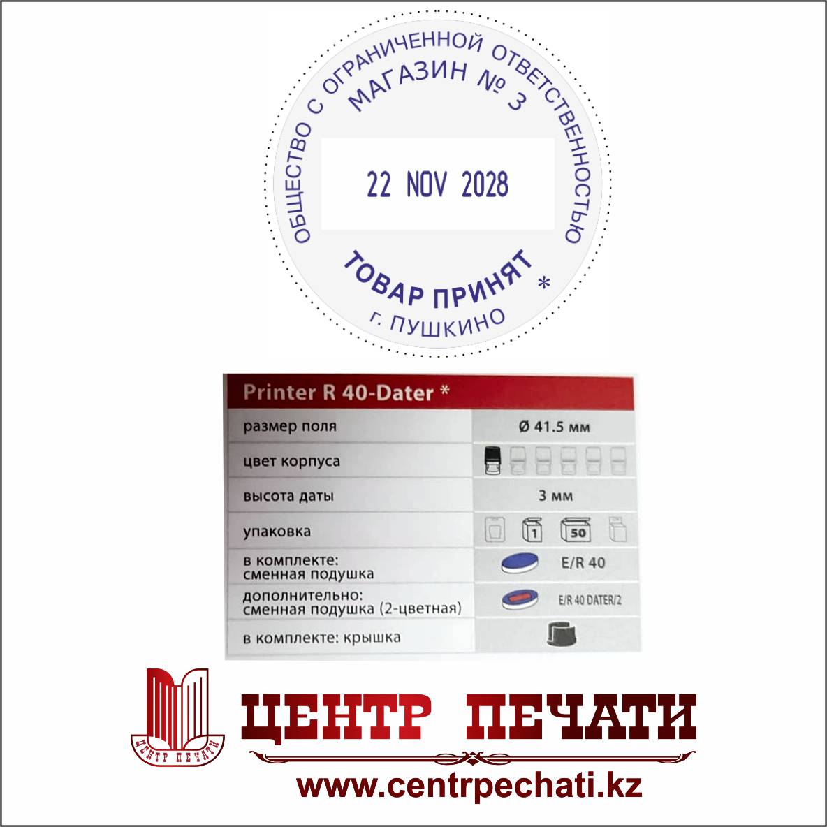 - Диаметр - 40 мм., дата располагается в центре;