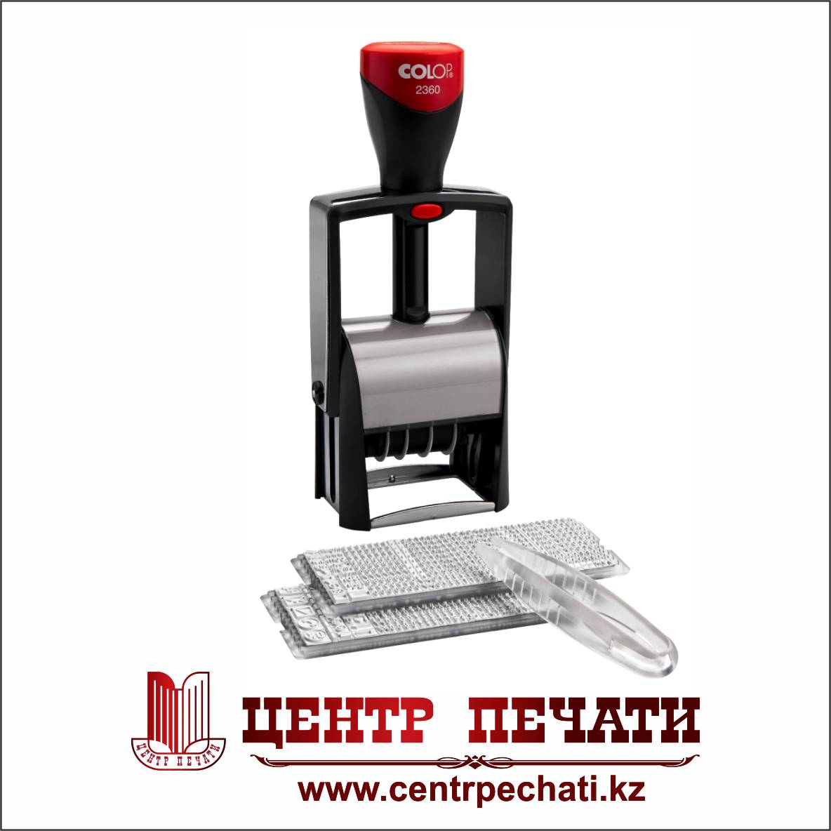 Ленточный механизм датера закрыт специальными кожухами, гарантирующими защиту рук от краски во время установки значений. Установка значений производится с помощью специального колёсика. Колпачок и ручка оснастки выпускаются с встроенной антибактериальной защитой Microban! Оснастка укомплектована сменной штемпельной подушкой синего цвета.